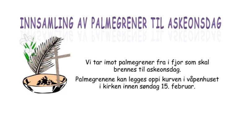 Kollekt fra søndag 25. januar – kr 6 009 INNSAMLIG AV PALMEGRENERVi